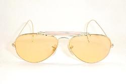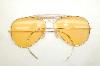 | Bausch & Lomb, Ray-Ban AmberMatic Adaptive... Ray-Ban Gold Aviators (Photo sensitive AmberMatic, Photochromic,Transition, B&L Lenses) Condition: Used / Excellent.. Vintage 70s. 22k gold filled frames with 3F Impact Resistant, Glass, Amber Photochromatic, Lenses... Markings: B&L in both glass lenses. B&L in nose-pads, B&L RAY-BAN USA on top-bar. 58[]14... Measures: 5 1/2" across, 2" high, Sz. 58-14 LARGE $248.00 |