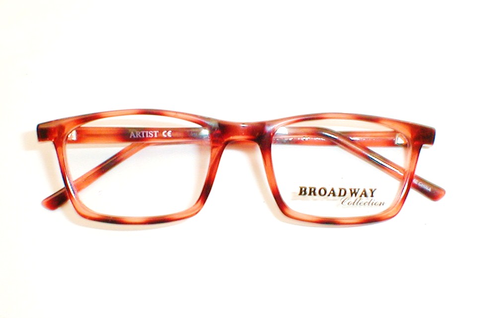 Broadway, Amber Measures: 5 3/8" across, 5 1/8 between the hinges (130mm). 1 1/2" high (sz. 49-20) with 5 1/2" (Medium/Large) Please measure at home for a good fit - click here for size questions. New optometrist stock. Mint. $104.00 |