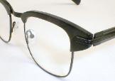 | Der Richter, Courtland Optical. Zylite Aluminum. Thick, polished, matte finished, aluminum. 50s 'G-Man' brow -line style. Awesome Art-Deco accents at the corners & thick spring hinges. Measures: 5 1/4" across (136mm) hinge to hinge. 1 3/4" high (sz. 46-22) with 5 3/4" spring-hinge temples. (Medium/Large) Choice of 3 Color Combos $129.00 |