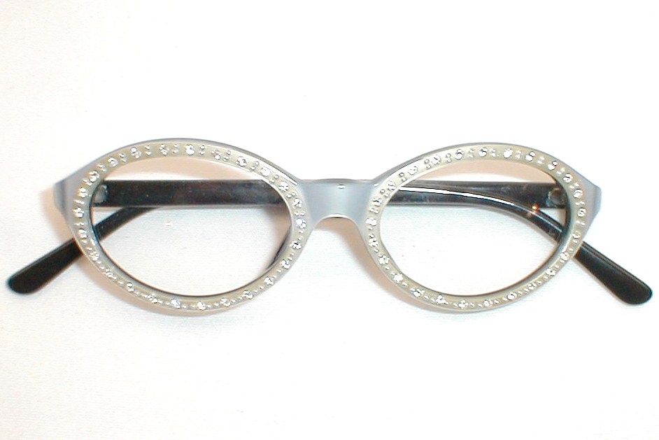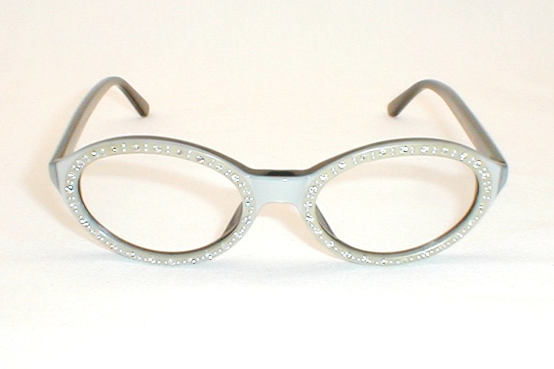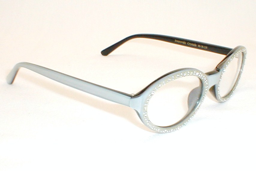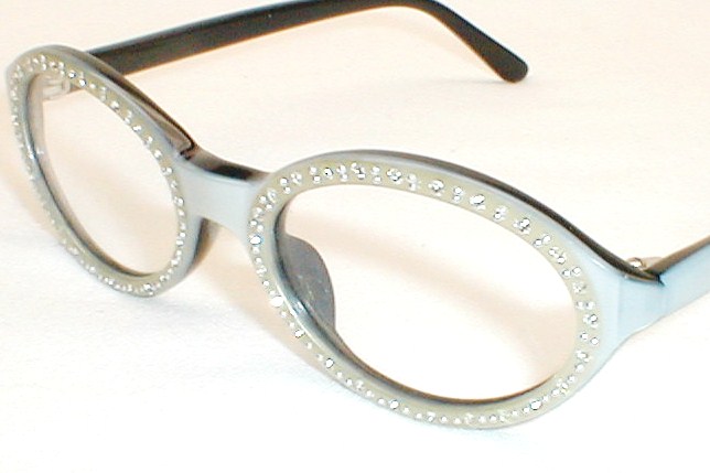 | PERSEPHONE, FriezeFrames Made in USA Color: Silver over Black w Rhinestones (Available in Pearl White) Measures: 5 " across, 4 5/8" (118mm) between the hinges. 1 5/8" high (sz 46-18) with 5 1/4" temples. Women's Small $129.00 |