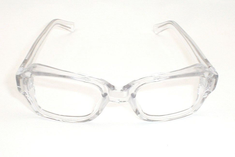 Atomic Boy : Courtland Eyewear Ultra-Thick Crystal frames with heavy hinges and matching temples. Measures: 5 1/2" across (headwidth), 1 3/4" high (sz. 52-22) with 5 1/2" temples. These frames have a good curve (wrap) so they will fit a Medium to Large mens head. Please measure at home for a good fit - click here for size questions. $148.00 |