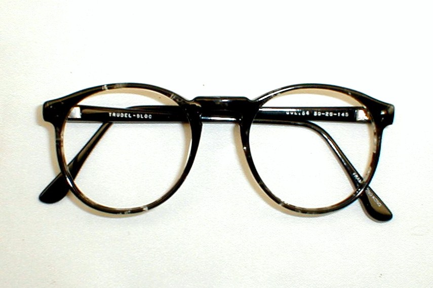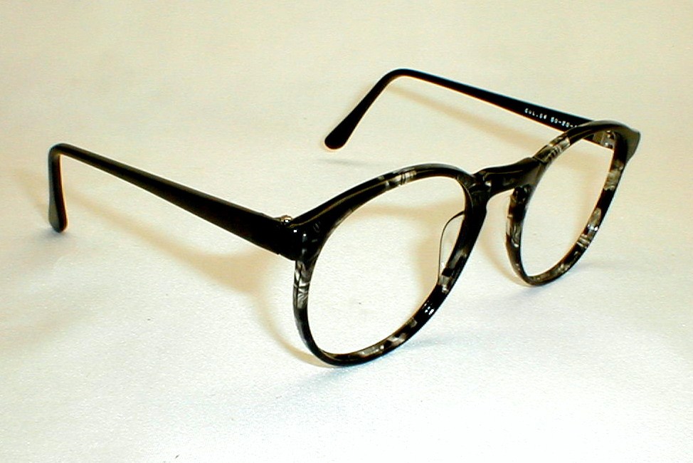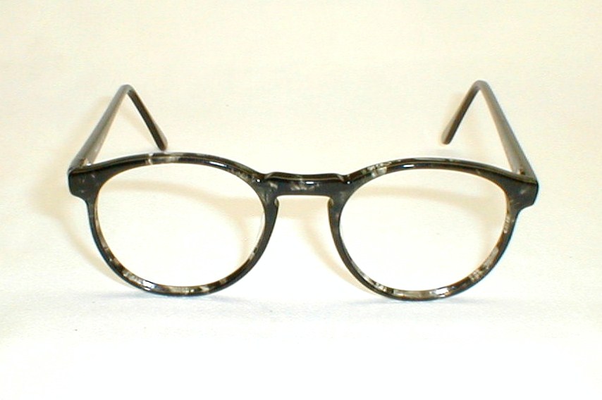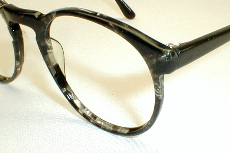 Color: "54" Black Marble bridge with black temples Condition: Excellent! 80s Optometrist stock, Never Used. Measures: 5 " across, 1 7/8" high (sz. 50-20) with 5 3/4" temples. Medium / Large $89.00 |