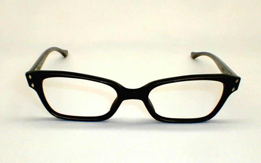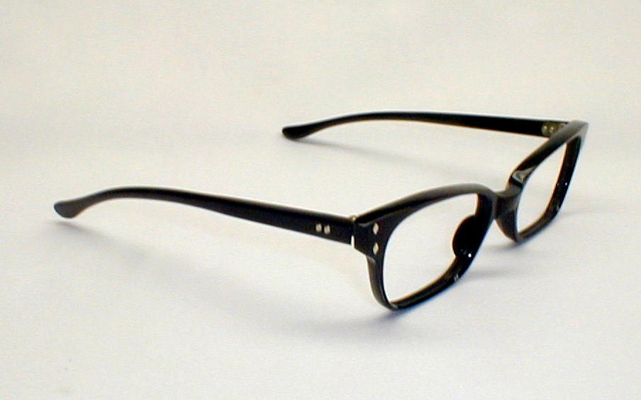 | Mod Black"Speak-Easy" Frame France Condition: New, old dealer stock - flawless. Color: Black. Measures: 4 3/4" across between the hinges (121mm), 1 1/4" high (size 48-18) with 5 1/2" temples. (Medium/Large) Think London in the 60s Special $79.00 |