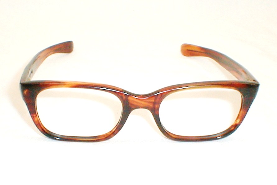 | Swank, Frame Italy, Marco-Flex. 50s-60s Condition: New, Old Optician Stock - Excellent. Large demi-amber frame with brass spring hinges. Made In Italy 2 SIZES: LARGE: Measures: 5 3/8" across (136mm) head-width, 1 1/2"" high, (size 50-22)with 5 3/4" temples. MEDIUM: Measures: 5" across (128mm) head-width, 1 1/2"" high, (size 48-20)with 5 1/2" temples. Special $179.00 |