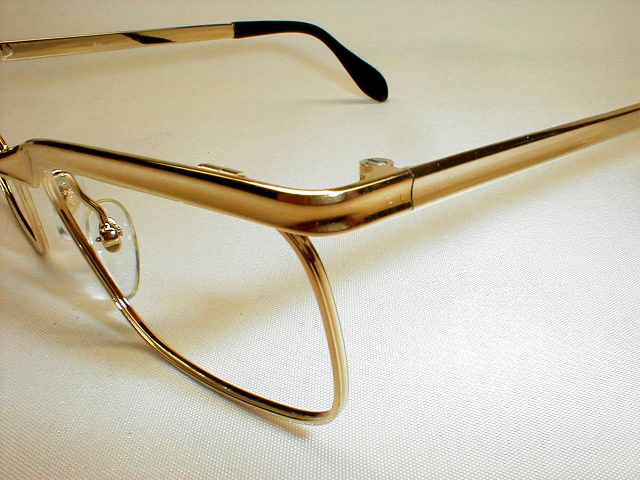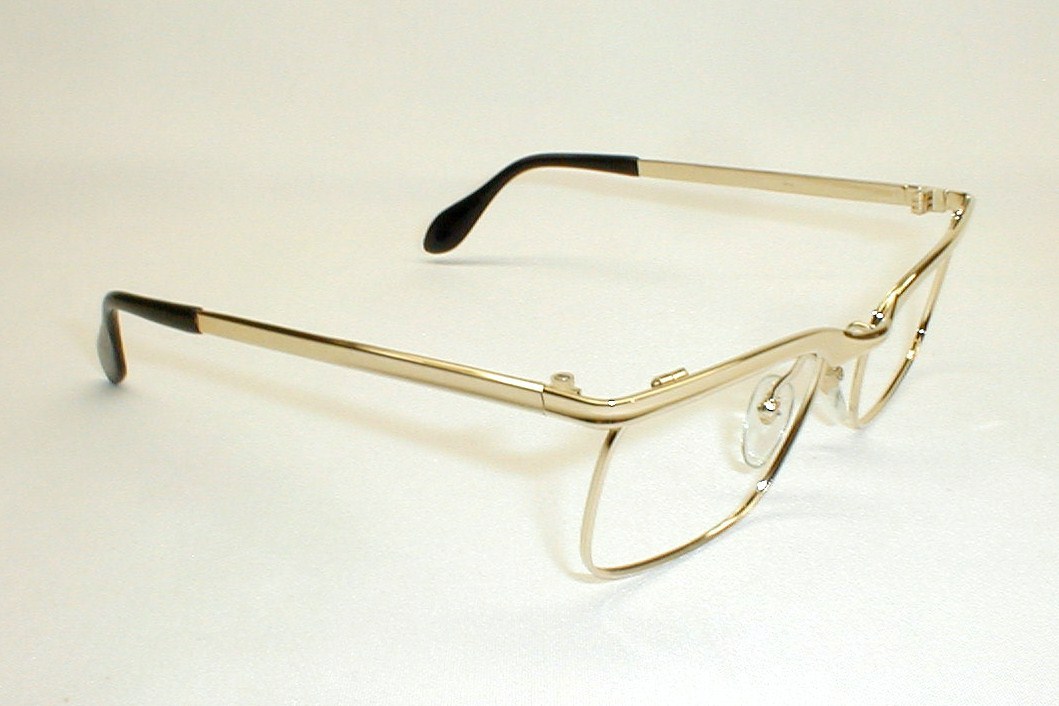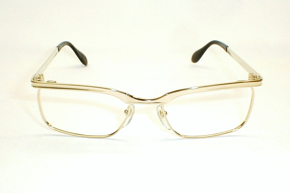 | Inter-National, KDS Optical. Condition: New, old dealer stock - flawless. Thick gold frames with heavy hinges. 3 SIZES: (Size 50-22) Measures: 5 1/8" across 130mm, 1 5/8" high with 5 1/2" temples Medium (Size 52-22) Measures: 5 1/4" across 133mm, 1 1/2" high with 5 1/2" temples Large (Size 54-20) Measures: 5 1/2" across 140mm, 1 5/8" high with 5 1/2" temples Larger Please measure at home for a good fit - click here for size questions. Special $108.00 |
