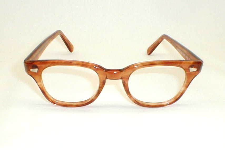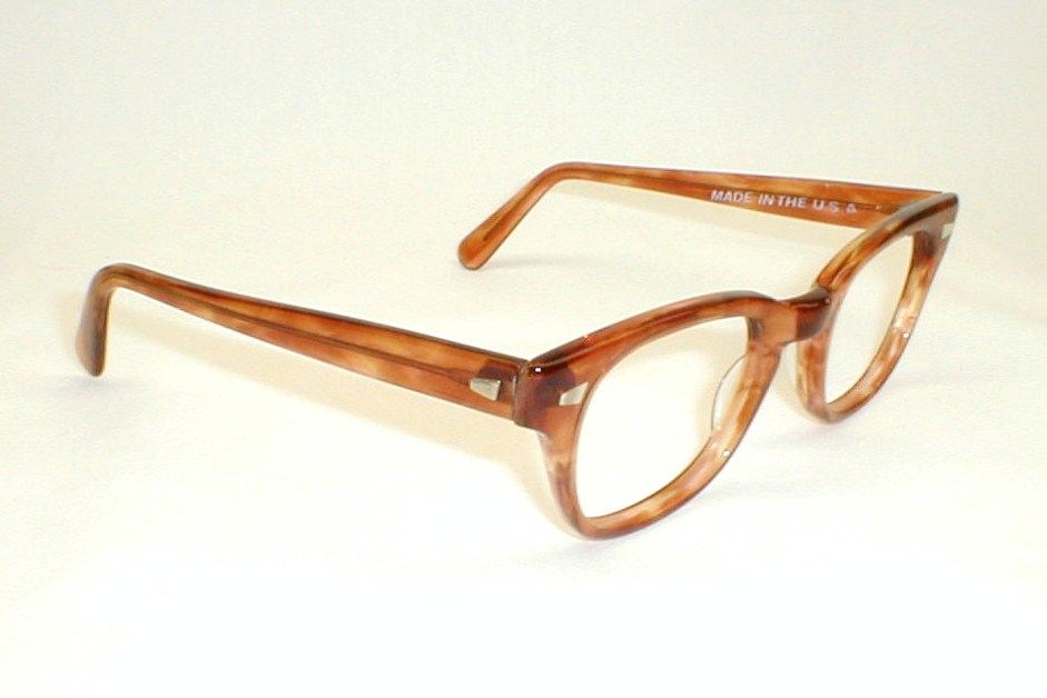 | Pathway Optical, USA 1960s. (Maple) LARGE: Measures: 5 5/8" across (143mm), 1 3/4" high (sz. 48-22) with 5 1/2" temples. Please measure at home for a good fit - click here for size questions. New, old optometrist stock. Mint. $134.00 |