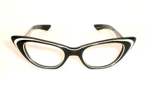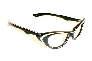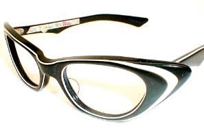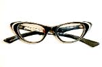 | I've never seen this brand before, ASO? They are extremely well made and are marked "Styled in France". The optician's label says "Saraja" but we'll call them Sahara. Glossy Black and White Layered Acetate. Measures: 5 1/2" across, 4 1/2" between the hinges (114mm). 1 1/2" high with 5 1/2" temples. (size 46-20) SMALL Unused optometrist stock, Flawless $149.00 |
