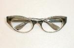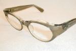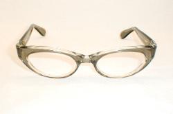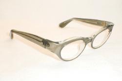 | Smarty - 1960s Frame France European Mod Wrap. Color: Gray-Smoke over crystal. New, Old Optician Stock - Mint. Sturdy hinges, real rivets. Measures: 5 5/8" across, 5 3/8 (131mm) between the hinges, head-width. 1 1/2" high with 5 1/4" temples (size 48-20). MEDIUM $114.00 |