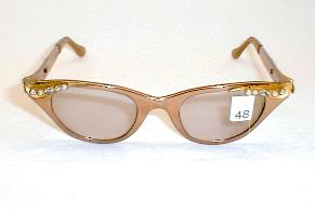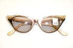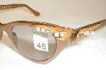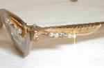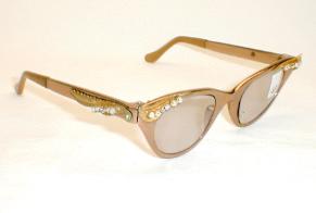 | TURA Eyewear, 1960s, USA. Color: Gloss Aluminum - Bronze Color with Gold accents on the brows and temples, and large Rhinestones. We've added UV lenses.. They can be used as sunglasses or replace them with your Rx lenses. Measures: 5 1/4" across (point-to-point), 5" between the hinges (128mm). 1 1/2" high, (size 44-20) with 5 1/4" temples... MEDIUM-SMALL New/Old optometrist stock - Mint. $169.00 |