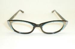| MARIA, Viva. Titmus Optical USA Color: 'Skylite' Light blue inlays with gold and silver accents + tiny rhinestones. 2 SIZES: SMALL: Measures: 4 7/8" across, 4 1/2" between the hinges (114mm). 1 1/4" high (sz. 44-20) with 5 1/4 " matching temples. MEDIUM/SMALL: Measures: 5 1/8" across, 4 3/4" between the hinges (121mm). 1 1/4" high (sz. 46-20) with 5 1/2 " matching temples. Old Optometrist stock, Flawless. Small $139.00 |
