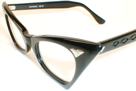 | Courtland Optical Materials: Italian Mazzucelli layered acetate with steel reinforced temples and true, hammered rivets. Color: Dress Black . Measures: 5 3/8" point-to-point, 4 7/8" across, between the hinges (125mm). 1 1/4" high (sz 46-19) with 5 1/2" temples. Women's Medium $136.00 |