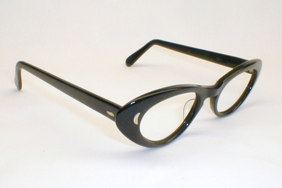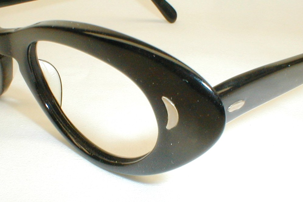 | "300" , Swan Optical USA Color: Black 2 Sizes Available: Size 46-20. Measures: 5" across (127mm). 1 1/2" high with 5 1/2" temples. Size 48-20. Measures: 5 1/8" across (130mm). 1 1/2" high with 5 3/4" temples. Medium/Large. New Old Optometrist Stock, 50s-60s $123.00 |