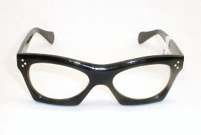 | The Juan G Esquivel Frame Frame France, 50s-60s Color: Layered Black, Reinforced Thick Temples, Heavy 7bbl Hinges. Measures: 5 1/8" across (127mm), 1 3/4" high (sz. 48-24) with 5 1/2" temples. Medium/Small Please measure at home for a good fit - click here for size questions. $118.00 |