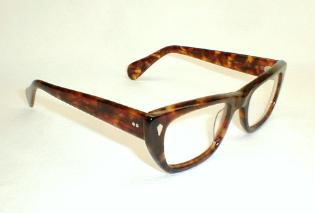 | 1960s Reproduction - better quality than original Italian 60s. Condition: New, old dealer stock, Excellent. Classic 1960s thick, tortoise, hand made Zyl frames. Measures: 5 1/2" across, 5 1/4" between the hinges. 1 5/8" high, with 5 1/2" temples. $109.00 |