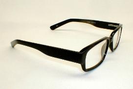 | Retro, Mfg. Modern Optical. Color: Glossy Black. Featuring hand made Measures: 51/2" across, 1 3/8" high, (sz. 52-18mm) with 5 3/4" temples. Condition: New, with 1 year warranty. Extra-Large $94.00 |