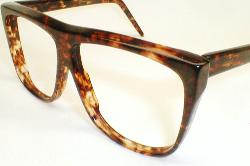 | Absolutely no marks, no engravings. My guess is European. They're made of quality sheet Zyl (acetate) which looks Italian. Color: Tortoise. Measures: 5 1/2" across, 5 1/4" between the hinges 1/2" temples (sz 58-18)... LARGE Please measure at home for a good fit - click here for size questions. New, old optometrist stock - Excellent $109.00 |
