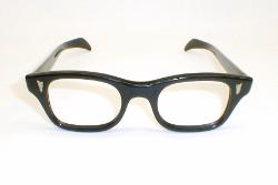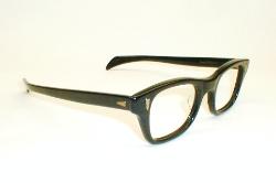 | Imperial Optical, USA. 50s 60s Thick Black eyeglass frames with silver accents and heavy 7bbl hinges. New,Old Optician Stock - Mint. 2 Sizes: MEDIUM: measures: 5 3/8" across, 5" between the hinges (128mm)1 1/2" high (sz. 46-20) with 5 3/4" temples. SMALL: measures: 5" across, 4 3/4" between the hinges (121mm)1 1/2" high (sz. 44-22) with 5 1/4" temples. Please measure at home for a good fit - click here for size questions. $149.00 |