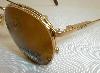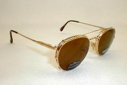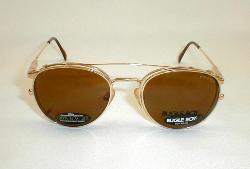 Bugle Boy Eyeglasses Sunglasses Condition: New, Dealers Old-Stock. Flawless... Vintage 80s Gold optical frames with matching clip-on sunglasses. Quality frames with spring-hinge temples. "Gold Marine". Measures: 5 1/8" across, 1 7/8" high (sz. 52-18) with 5 1/2" matching temples. $59.00 |
